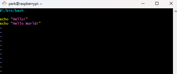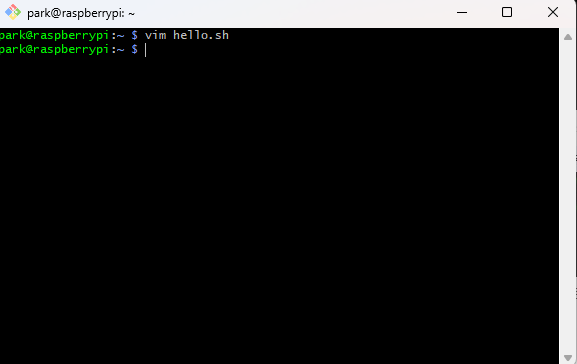 - 스크립트를 작성해보자. 먼저 hello.sh를 생성하면서 vim으로 파일을 열어준다.