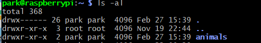 - ls 명령어로 animals와 fruits 디렉토리를 확인한다.