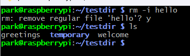 파일 부분에 파일 이름을 명시하면 해당 파일을 삭제할 수 있다. 기본적으로 일반 파일만 삭제할 수 있으며 디렉토리를 삭제하기 위해서는 옵션을 추가해야 한다.