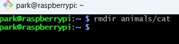- cat 디렉토리를 삭제한다. 사진과 같이 아무것도 출력되지 않으면 정상 삭제된 것이다.