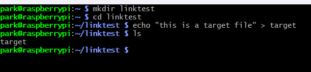 - linktest라는 실습용 디렉토리와 target이라는 파일을 그 디렉토리 내부에 생성한다.