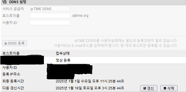 IPTIME의 경우에는 xxxxx.iptime.org로 설정할 수 있습니다.
