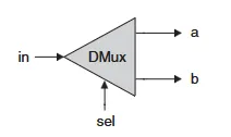 칩 이름: DMUX 입력: in, sel 출력: a, b 기능: if(sel == 0) then {a, b} = {in, 0}, else {a, b} = {0, in}