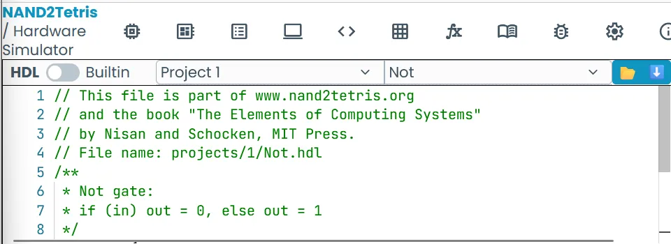 NAND2Tetris 웹 IDE로 접속해서 HDL로 논리 게이트 코드를 작성하고 테스트해볼 수 있다.
